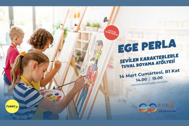 Tepe Emlak Yatırım A.Ş. yönetimindeki Ege Perla, 14 Mart tarihinde, 14.00- 15.00 seanslarında düzenlenecek “Sevilen Karakterlerle Tuval Boyama Atölyesi” ile çocukların hayal gücünü tuvale yansıtacakları keyifli bir sanat deneyimi sunacak.