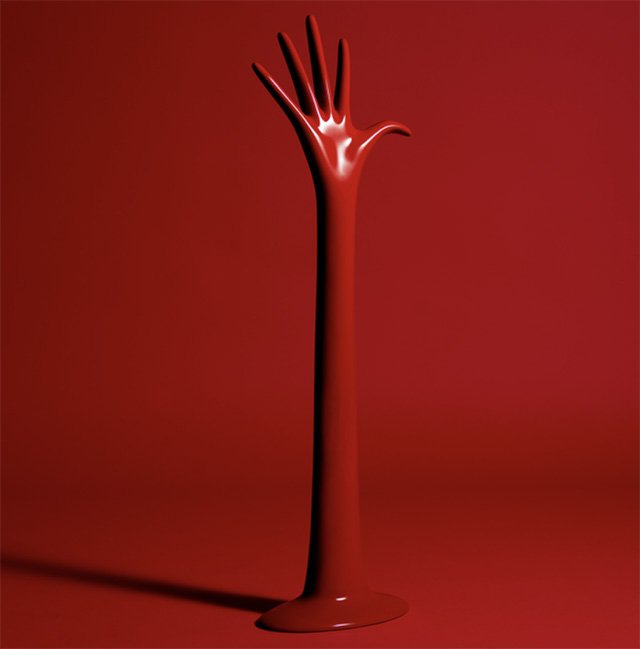 Koleksiyonun kalbinde yer alan ve 1968 tarihli ikonik Schläppi elinden ilham alan 4.7 metrelik devasa “Kırmızı El”, markanın tarihi rengi olan “Bonaveri Red” ile yeniden hayat bulmuş. Bu renk seçimi tesadüf değil; hem Ferrara’nın tarihi dokusuna bir atıf hem de serginin dış dünyaya açılan o çarpıcı, yarı şeffaf kırmızı vitrinlerinin ruhu.
