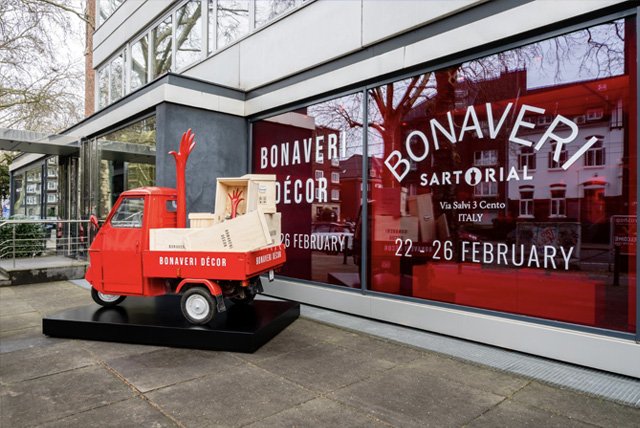 Showroom’un önünde park edilmiş, sergi kasalarıyla yüklü ikonik Ape van, bizi markanın ilk yıllarına götüren sempatik bir nostalji rüzgarı estirirken; içerideki modern yerleştirme geleceğe dair bir vizyon çiziyor. Kuruluşun mimarları Romano ve Adele Bonaveri’nin devasa baskılarının galerinin arka duvarından misafirleri selamlaması ise, bu modern vizyonun ne kadar sağlam bir temel üzerine inşa edildiğini hatırlatıyor.