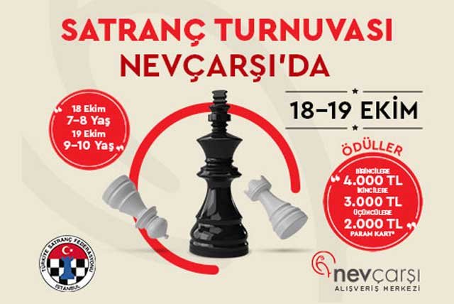 Nevçarşı Alışveriş Merkezi, Türkiye Satranç Federasyonu iş birliğiyle düzenleyeceği “Satranç Turnuvası”nda minik zihinleri bir araya getiriyor. Turnuva, 18-19 Ekim tarihlerinde gerçekleşecek.