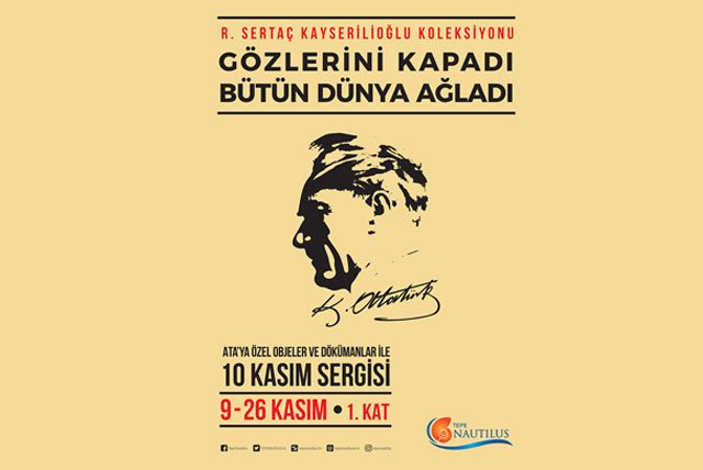Tepe Nautilus, Atatürk’ün ölüm yıldönümüne özel, Ata’nın daha önce hiç görülmemiş şahsi eşyaları ve dokümanlarını, “Gözlerini Kapadı Bütün Dünya Ağladı” isimli sergisinde ziyaretçileriyle bir araya getiriyor. Sergide; 10-20 Kasım 1938 tarihli ve Atatürk’ün ölüm ilanlı ilk gazete baskısının aslı, 10 Kasım 1938 gününden itibaren yaşananlar ve yazılı basından yankıları, İstanbul ve Ankara’daki cenaze törenleri ve Anıtkabir’e nakli ile ilgili fotoğraf ve gazeteler bulunacak.